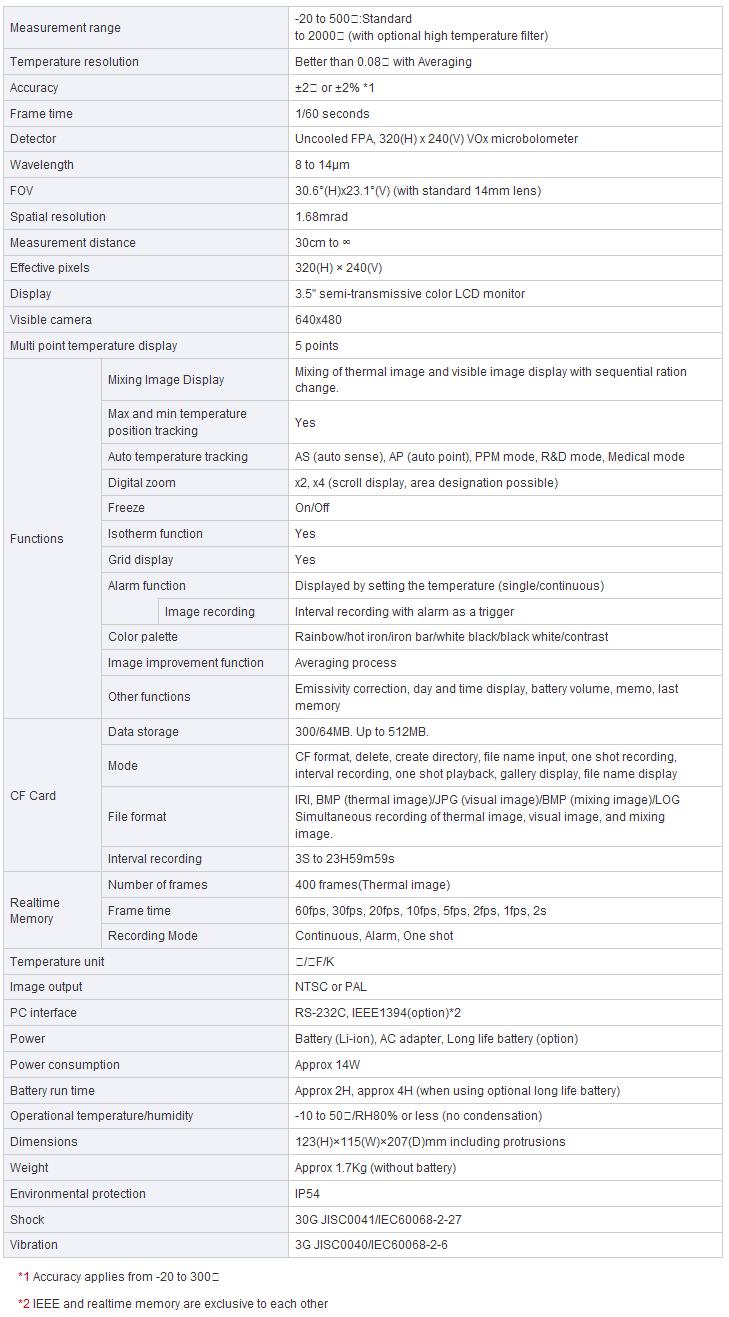 The ergonomic, lightweight, waterproof (IP-54 rated) camera body makes it easy to control in the field. Select from a number of in-camera analysis tools including multiple point measurement, temperature alarm set point, area analysis, isotherm and auto hot/cold spot tracking. Measure temperature up to 2000°C or as cold as -20° and record images in both 14-bit and standard JPEG file formats. The